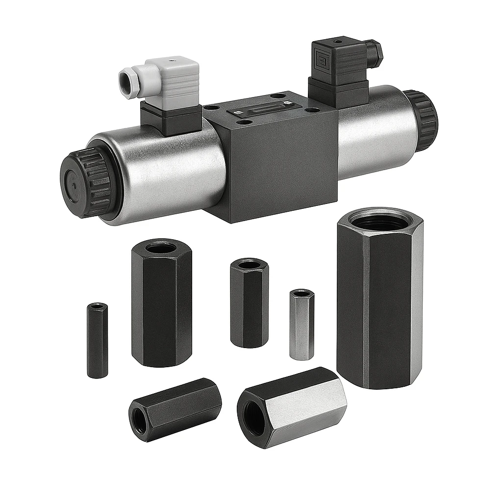 Tersedia pilihan directional control valve, check valve, dan berbagai ukuran hydraulic couplings dan sambungan (fittings) dengan berbagai tipe ulir dan koneksi.